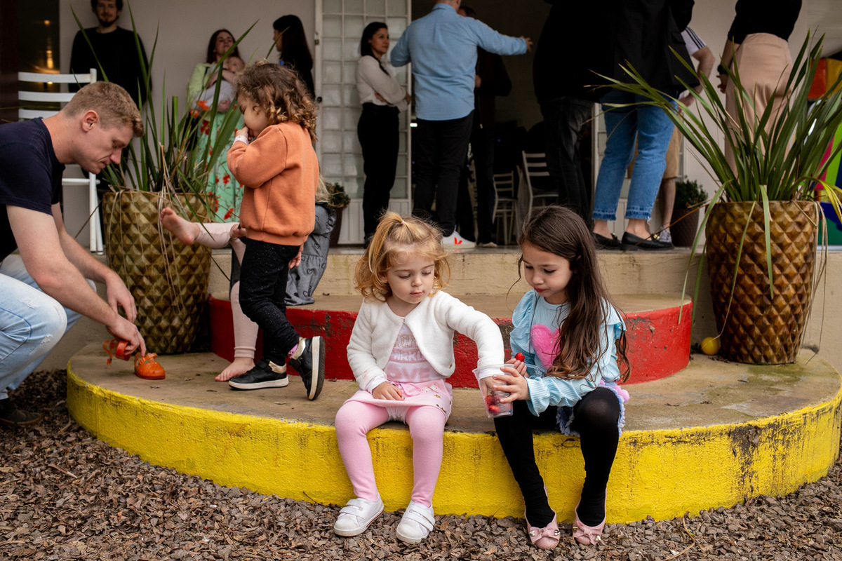 Evento empresarial em comemoração ao aniversário da empresa. Almoço com família e funcionários.